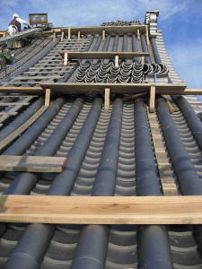 ひとつひとつ屋根に葺かれていきます。 |