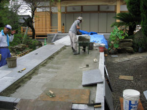 敷石をはめこんでいく。たいへんな作業だ。 |