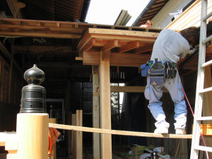 9月28日から玄関屋根部分の工事。