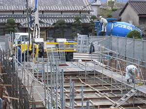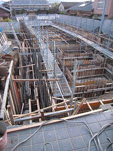 11月12日までに足場をもとに、基礎の 板組みが終わり、コンクリートの流し込み が成されました。これ以上ないほどしっかり とした基礎が完成しました。 |