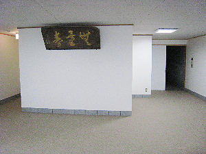 7月19日、会館地下部分を整備しました。 旧本堂にあった額をかけ、この建物を 「無量寿会館」と名づけました。 |