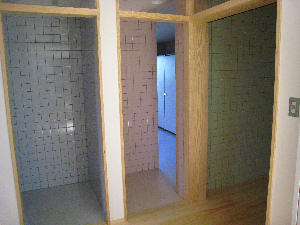 会館1階のトイレです。 タイルも色分けされてきれいになりました。 緑のところは、「だれでもトイレ」で、バリアフリー になっています。 |