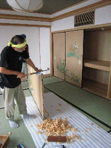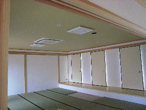 会館2階の法中会議室です。 畳や建具が入って美しく仕上げられました。 |