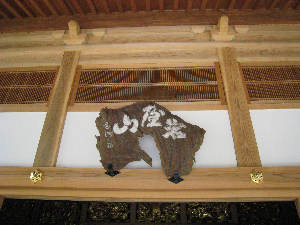 本堂入り口に、これも旧本堂にかかっていた 「岩屋山」の山号をかけました。本堂が締まって 見えます。 |