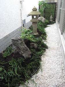 7月21日に納骨堂横を整備して、残った 石灯籠や岩を利用して、中庭をつくりました。 気持ちが和む場所になりました。 |