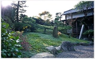 庭内にセンダンの木および松があり、樹齢 300年以上と推定されます。残念ながらセン ダンの木は台風で折れ、また松は植え変わり ましたが、当時の面影ははっきりと残っています。 |